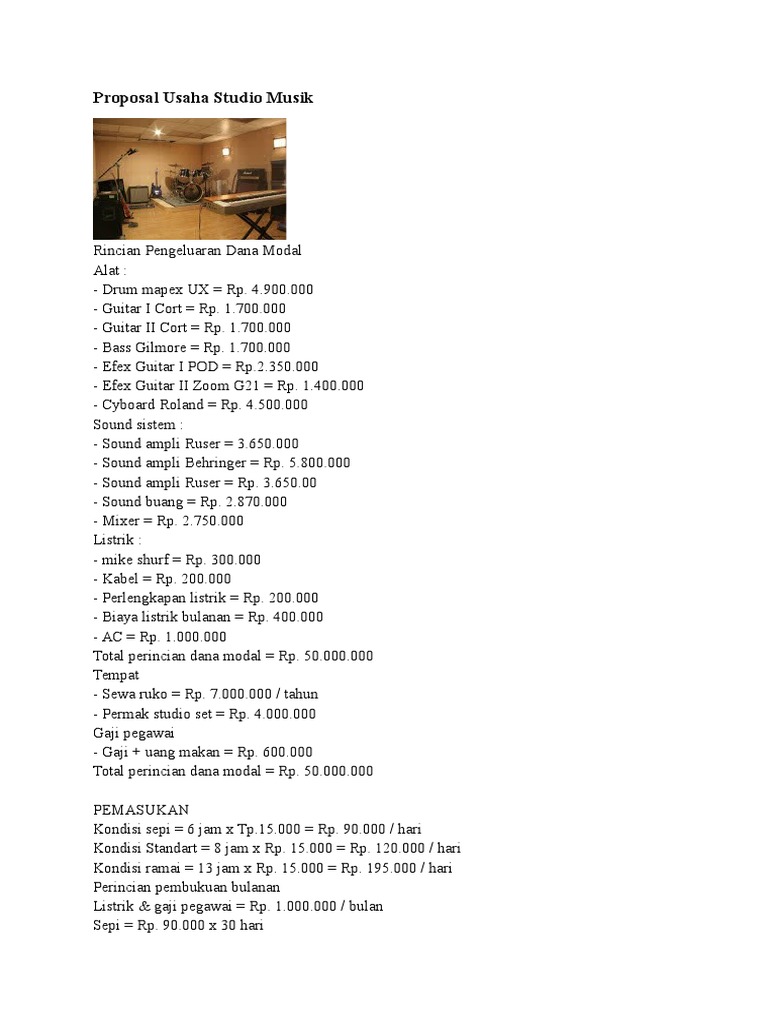 Contoh Proposal Usaha Studio Musik Lengkap - Berbagi ... from lh3.googleusercontent.com Seni by pniawan in types > legal forms, seni, and jathil. Kegiatan ini merupakan salah satu acara tahunan yang di laksanakan di smk n 2 wonosari. Rasa kepedulian terhadap seni musik tradisional haruslah terus dikembangkan dikalangan anak muda, agar tidak luntur bahkan menghilang karena tergeser oleh hadirnya musik modern yang. Proposal generation software 5.0 proposalsmartz proposal writing software. Proposal seni budaya seni musik. Untuk kamu yang sedang mencari contoh proposal yang baik itu seperti apa? Contoh proposal pembuatan studio musik. Dalam kehiduan berbangsa dan bernegara , generasi muda mempunyai posisi strategis terhadap masadepan bangsa.